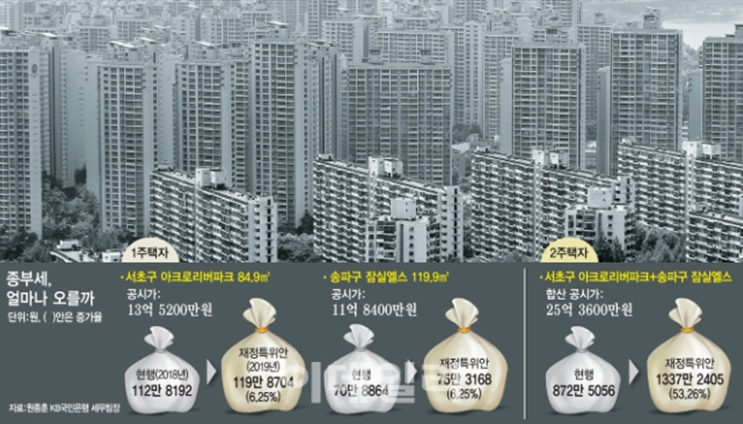 그에 하나로 종합부동산세를 크게 올렸습니다.