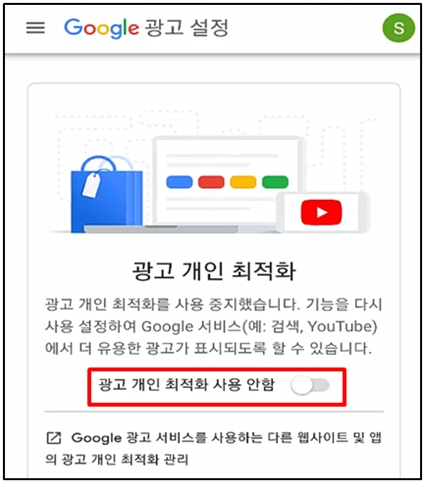 “광고 개인 최적화” 사용여부를 선택할 수 있는데