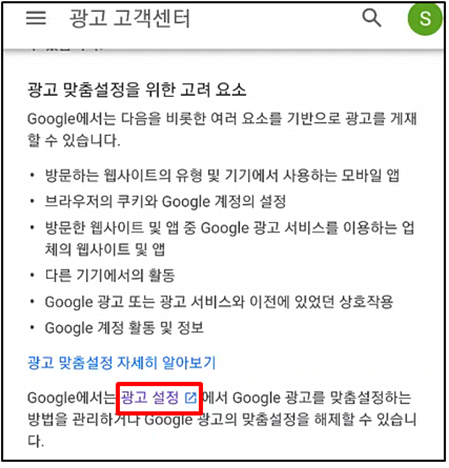 해당 구글 설정에 의해 나타나는 광고 외에도