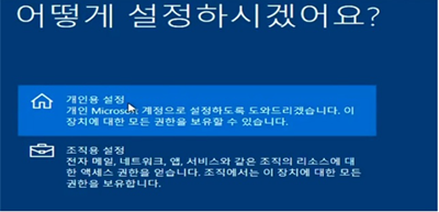 해당 화면에서는 “개인용 설정”을 선택하시면 됩니다.