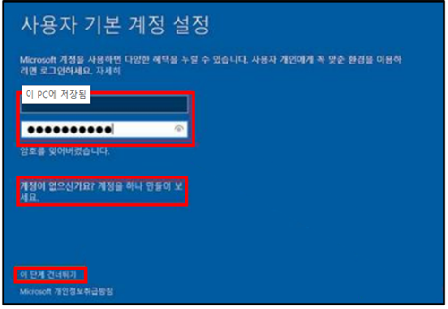 “사용자 기본 계정 설정” 화면서는