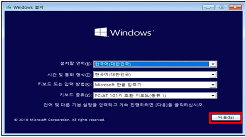 Windows 설치를 시작합니다.