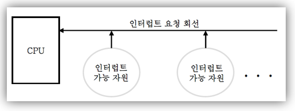 인터럽트 요청이 가능한 장치를 CPU와 단일 회선으로 연결하는 방식입니다.