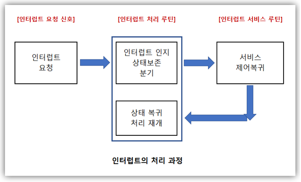 이처럼 처리과정은 PC의 값을 안전한 곳에 기억시켜 보존하고,