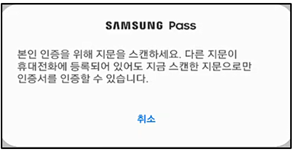 삼성 패스 등록된 인증방식으로 추가 요청을 합니다.
