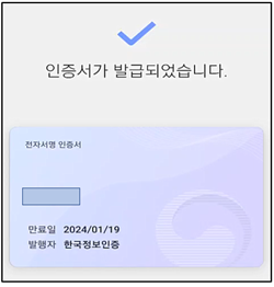 “인증서가 발급되었습니다” 화면이 나타납니다.