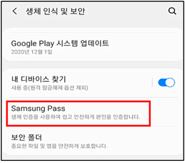 인증이 완료되면, Samsung Pass” 화면이 보입니다.