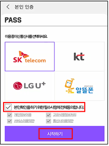 ‘휴대폰의 통신사’를 통한 인증을 진행합니다.