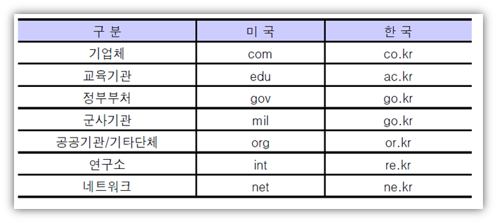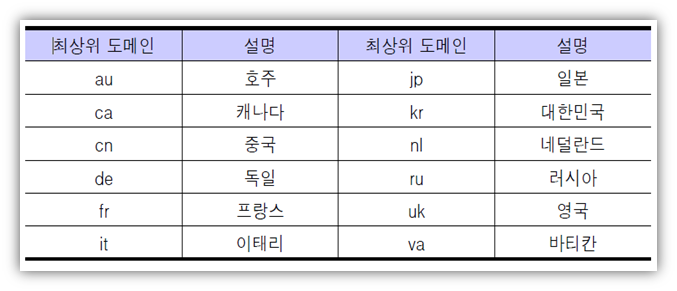 주소 구조에서 ‘국가별 최상위 도메인’ 및