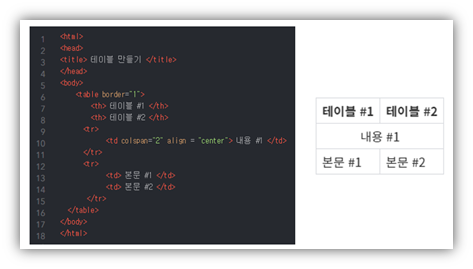 ◈ 참고, <align = “Center”> ⇒ 병합된 셀의 글자를 가운데로 정리