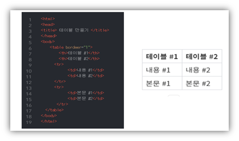 위 태그들을 사용하여 간단한 '미니 테이블'을 만들어 보았습니다.