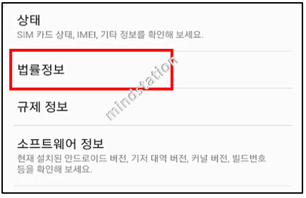 휴대전화 정보화면에서 “법률정보” 메뉴를 클릭합니다.