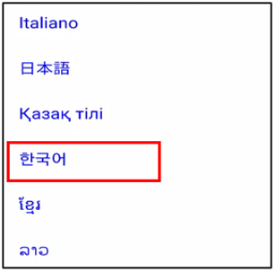 해당 내용을 글로벌 언어로 제공하고 있어 “한국어”를 선택합니다.