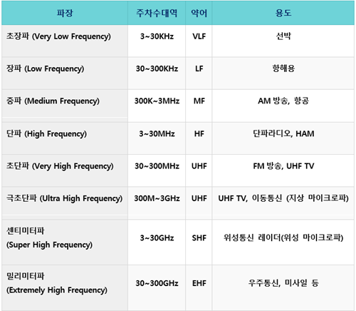 파장 또는 주파수에 따라 다양한 영역으로 구분되며,