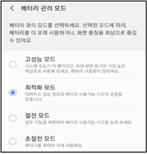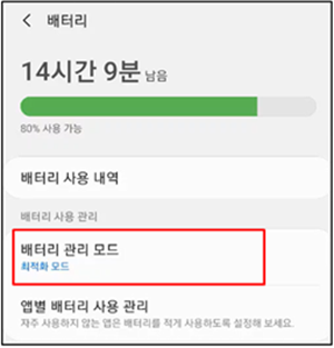 이렇게 “디바이스 케어 > 배터리 관리 모드” 를 통해