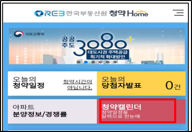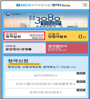 메인 화면에서는 청약일정 및 당첨자발표