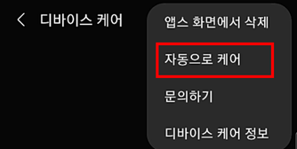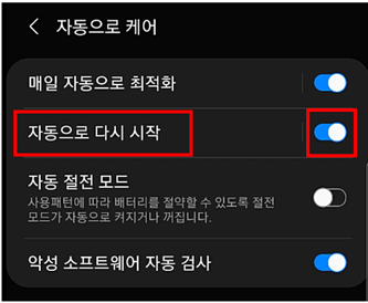 ‘자동으로 케어’ 메뉴에서 “자동으로 다시 시작”
