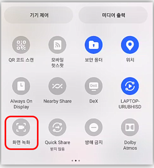 2번째 화면에서 “화면녹화” 버튼을 선택합니다.