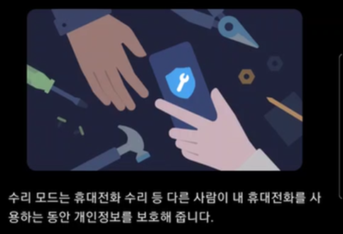 알림창을 열어 ‘휴대전화 수리 모드 사용 중’ 을