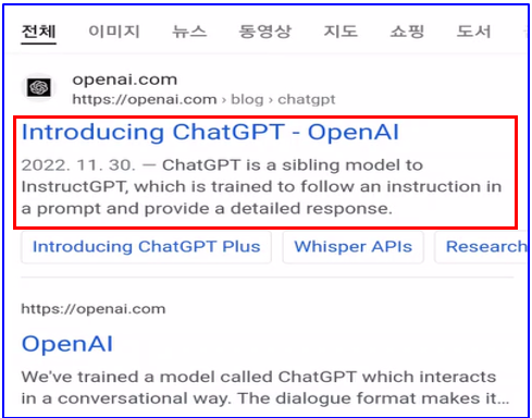 검색 화면에서 “Introducing ChatGPT–Open” 를 선택합니다.