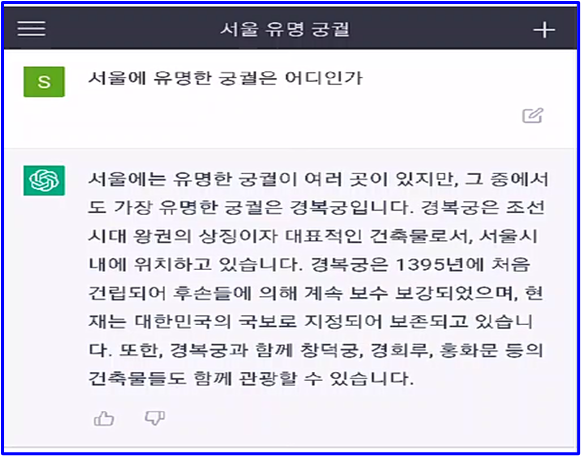 ‘서울에서 유명한 궁궐’에 대해서 물어보았습니다.