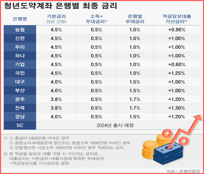 ‘금리/수수료 비교공시-예금상품금리비교-청년도약계좌금리’ 참조