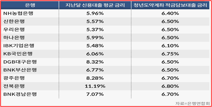은행별 금리수준은 은행연합회 소비자포털(https://portal.kfb.or.kr)