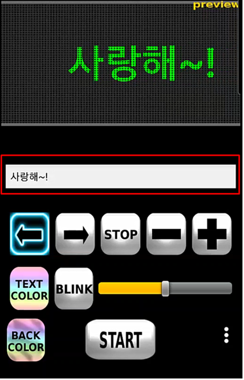 “BLINK” 를 클릭하면 글자는 깜빡입니다. 글자색과 배경색은 “TEXT COLOR” 와 “BACK COLOR” 로 설정하시면 됩니다.