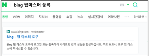 해당 검색 사이트도 "Bing 웹마스터"를