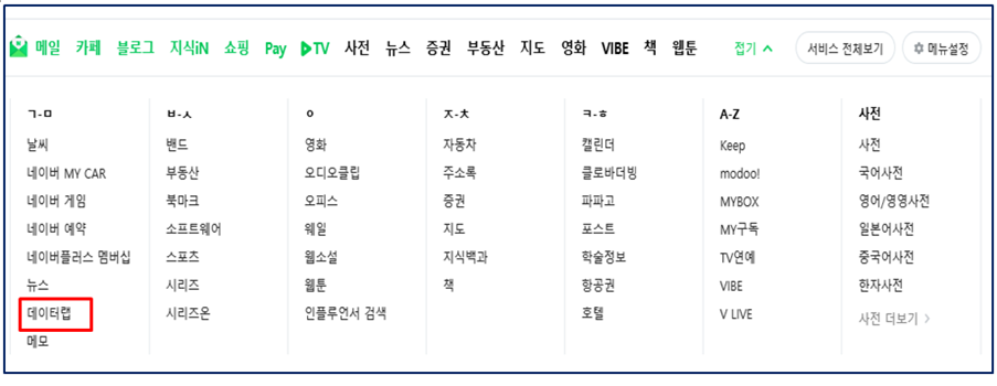 그 중에서 촤측 하단의 “데이터랩”을 선택합 니다.