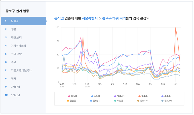 그외 데이터랩 홈 화면의 상단 메뉴에서 제공하는 메뉴들의 기능을 보면,