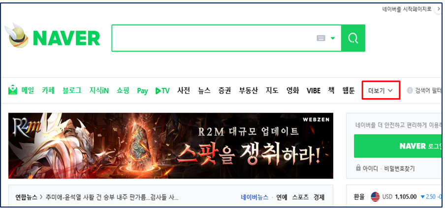 가장 많이 사용하는 네이버를 기준으로 알아보면, 네이버 홈페이지에서 보시면
