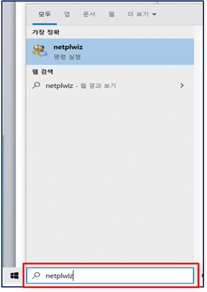 “윈도우키 + R” 단축키를 사용하여 “netplwiz”를 입력합니다.