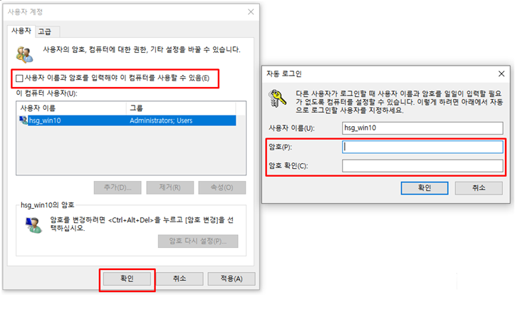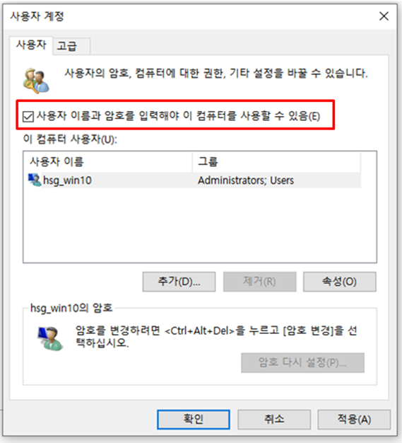 “사용자 이름과 암호를 입력해야 이 컴퓨터를 사용 할 수 있음”에